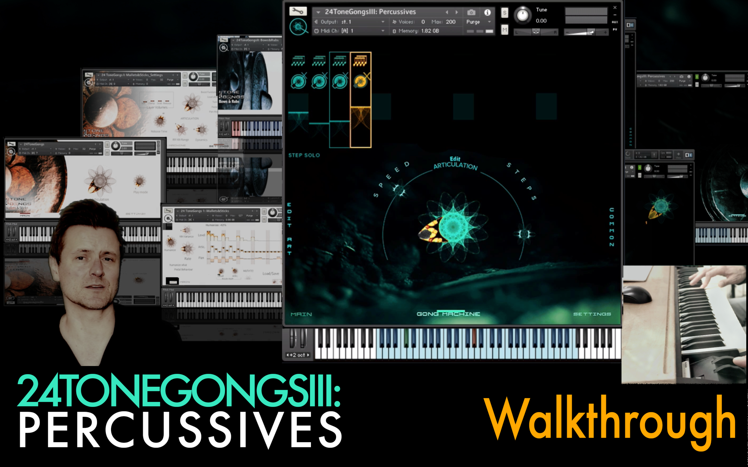 24ToneGongsIII: Percussives is the 3d and final part of 24tonegongs. This instrument focuses on the percussive qualities of the gongs. The new GongMachineV2 adds a whole new dimension to the performance driven percussive sequences: Every step of the gong machine is a gesture, a micro sequence in itself, ranging from simple flams to complex big group hits by 20 players. There's a wide palette of articulations to choose from for every step, from multiple types of subtle finger hits to processed epic wardrum hits. 17 in total. All multisampled from up to 36 gongs in multiple rr's and velocity layers. These two parameters make for a enormous variety of percussive sequences, and they all sound like an acoustic ensemble. This is not a hybrid- but an acoustic-sounding VI.